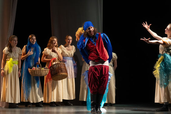 Geruch auf der Bühne darzustellen ist eine kreative Herausforderung. Wir haben uns für Tücher als Grundelement entschieden. Grenouille erfasst die Welt nur anhand von Gerüchen, Gegenstände bleiben nebensächlich. Dementsprechend verzichten wir auf der Hauptbühne fast ganz auf Gegenstände und spielen mit langen, durchscheinenden Vorhängen. Auch die einzelnen Figuren zeichnen sich über verschiedenfarbige Tücher aus, weil jeder Geruch individuell ist. Nur im hinteren Teil der Bühne sind schwere, alte Materialien vorhanden. Der Hintergrund ist unser Untergrund. Genauso wie heute Ideen im Verborgenen geköchelt werden, die unsere Gesellschaft erneut vor Herausforderungen stellen, entsteht auf der Bühne im Hintergrund die Mixtur des absolut verführenden Parfüms.
